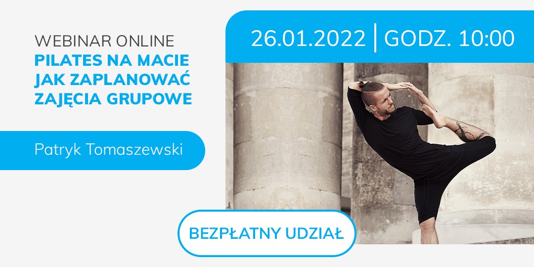 - 26.01.2022 r. godz. 10:00 – „Pilates na macie. Jak zaplanować zajęcia grupowe” z Patrykiem Tomaszewskim,